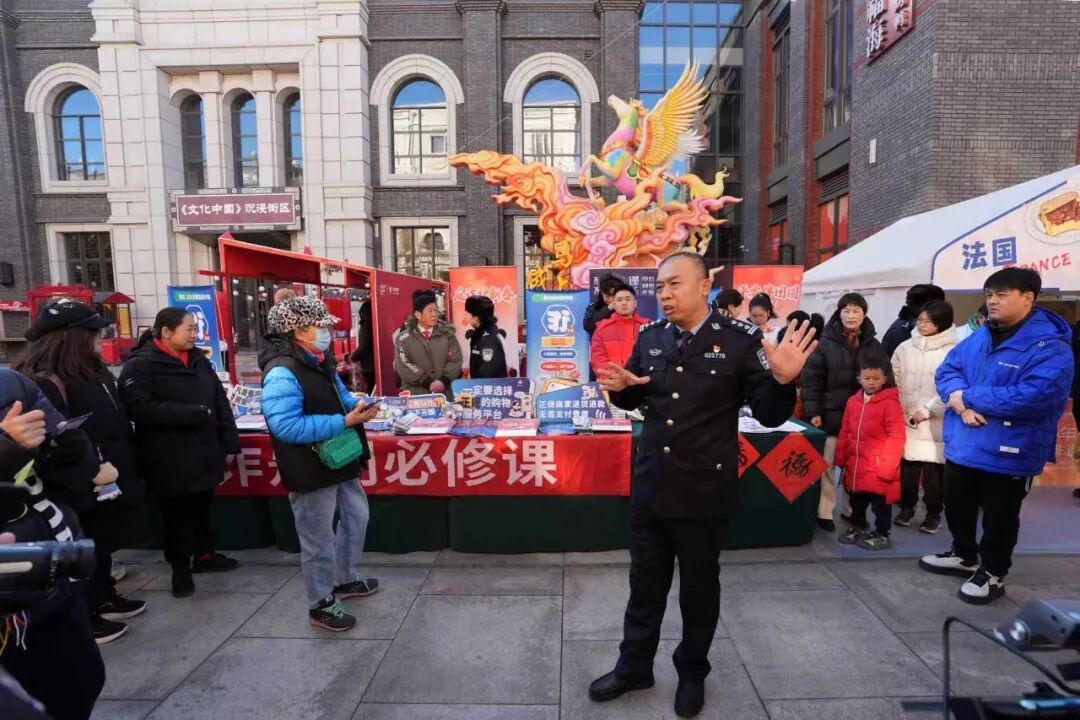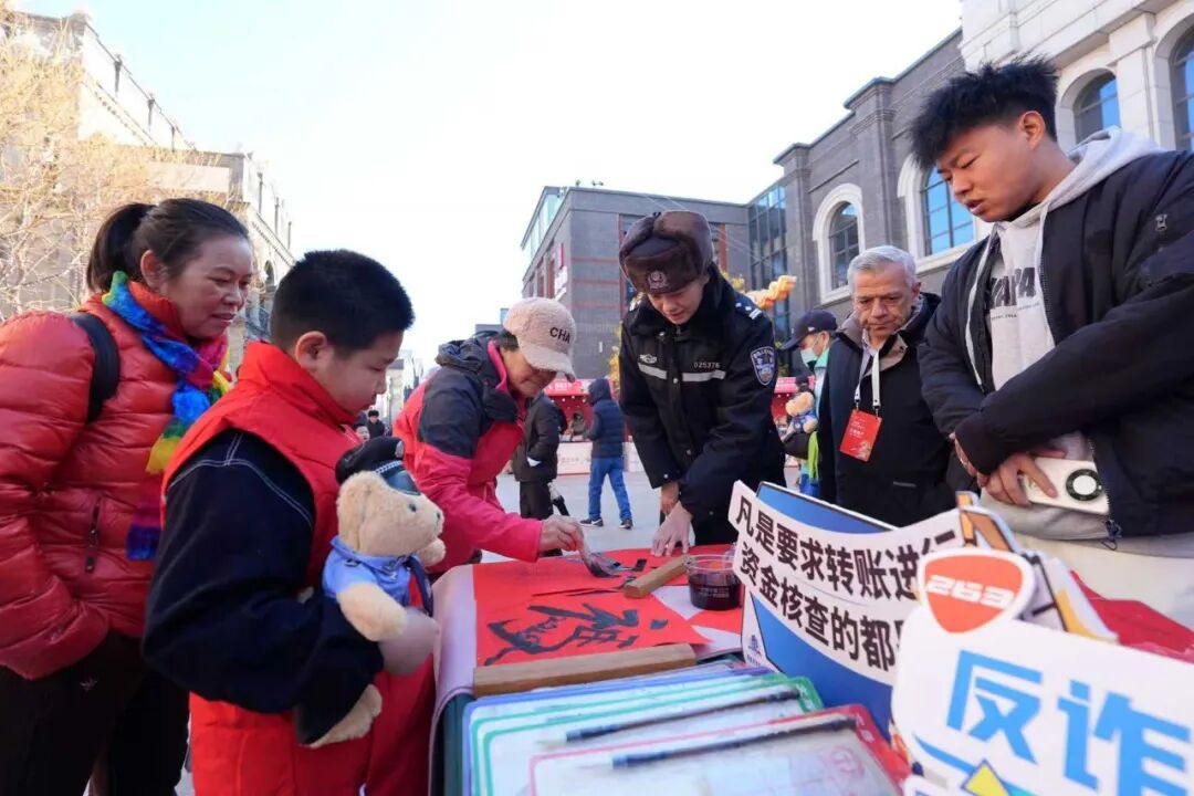 在北京坊新春坊会期间,西城警方还创新开展了“新春反诈市集”主题宣传活动,民警化身“反诈宣传员”,将反诈知识与传统年俗巧妙结合,通过快板、三句半、写福字、送春联等群众喜闻乐见的形式,向市民游客普及电信网络诈骗防范知识,讲解常见诈骗手段,提醒群众守好“钱袋子”,切实营造“反诈护新春、平安伴团圆”的浓厚氛围,让安全防范意识深入人心。