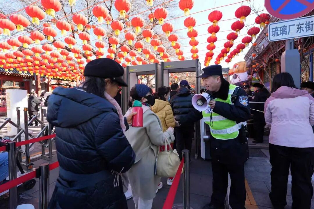 春节期间,在北京市西城区,传统庙会与新春文化活动相继启幕,厂甸庙会和北京坊新春坊会人头攒动。为确保庙会及西城区各项新春文化活动平安、有序开展,西城公安分局聚焦风险防控、秩序维护、应急处置、服务群众等关键环节,全力以赴做好各项安保工作,为市民群众欢度春节筑牢坚实安全屏障。