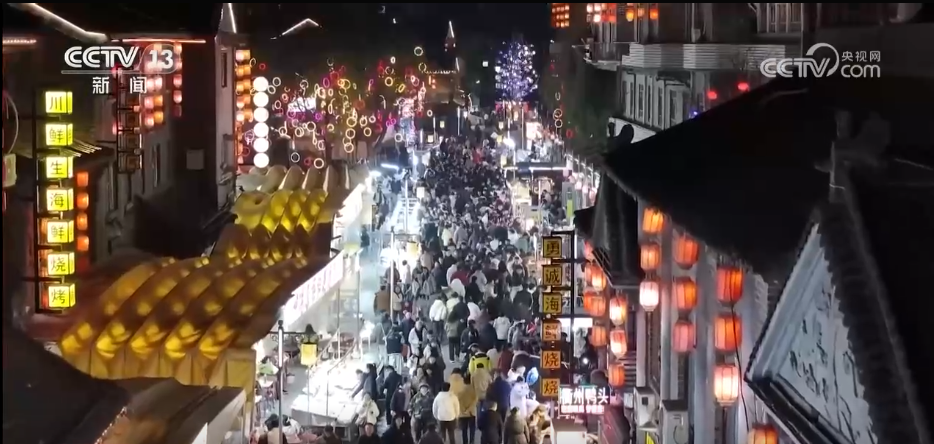 央视网消息:假日期间,在山东、江苏、上海、宁夏等地,人们走进商超、品美食、赏非遗,体验新鲜消费场景,节日市场红红火火。