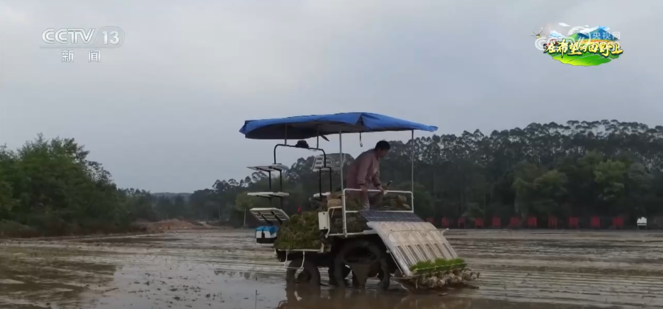 在河源市连平县忠信镇新下村的连片千亩稻田里,多台插秧机正穿梭作业,一株株秧苗按设定的行距、株距被精准栽插。此外,当地主推两个优质稻品种,并采用合理密植技术,机插秧每亩保持1.6万穴左右,为大面积单产提升打下基础。