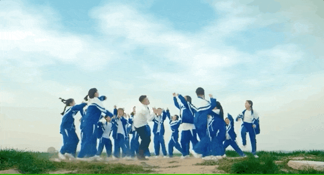 短片里,孩子们整齐划一地躺在地上,双手向上做托举状,随后坐起左右摇摆,被网友评论:“像新生的禾苗、麦苗,像发芽的新绿,像刚冒尖的庄稼。”