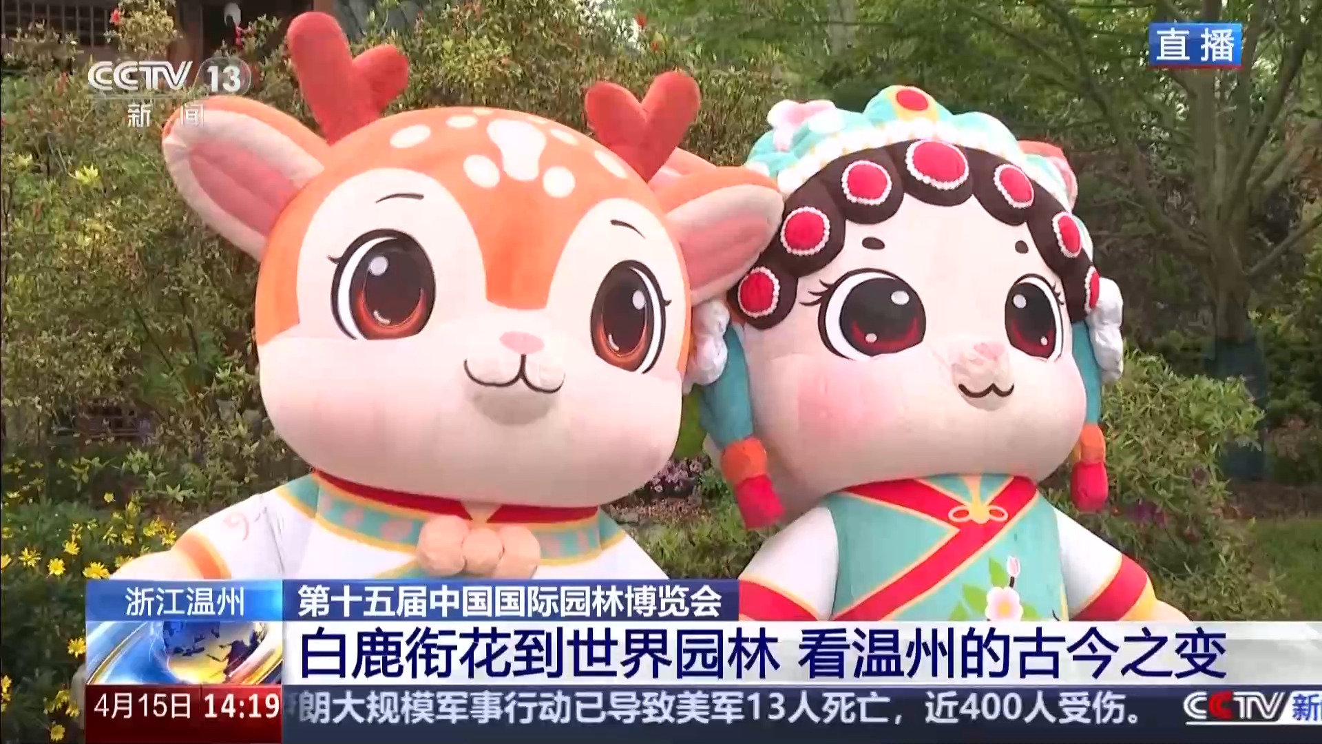 总台记者 韩栋:我现在就在第十五届园博会的现场。首先给大家介绍三位“新朋友”——吉祥物“瓯宝家族”。这是一家三口的鹿形角色,选择“鹿”作为吉祥物,藏着温州1700多年的建城传奇。
