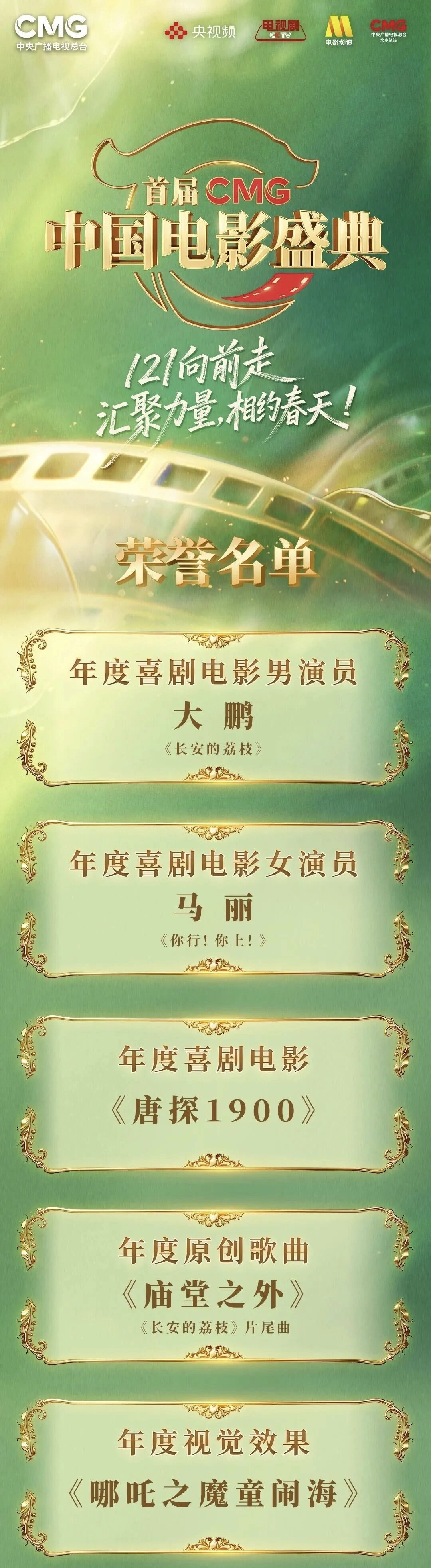 在这个属于中国电影的春天里,光影力量已然汇聚成潮。首届《CMG中国电影盛典》不仅是对过去一年丰硕成果的深情回眸,更是中国电影人向着未来“一二一、向前走”的集体宣言。它以类型化评选回应创作生态的多元需求,以媒体人联合推优兼顾专业视角与大众感受,以“电影+”生态拓展产业边界,为中国电影评价体系的革新作出了意义深远的探索。